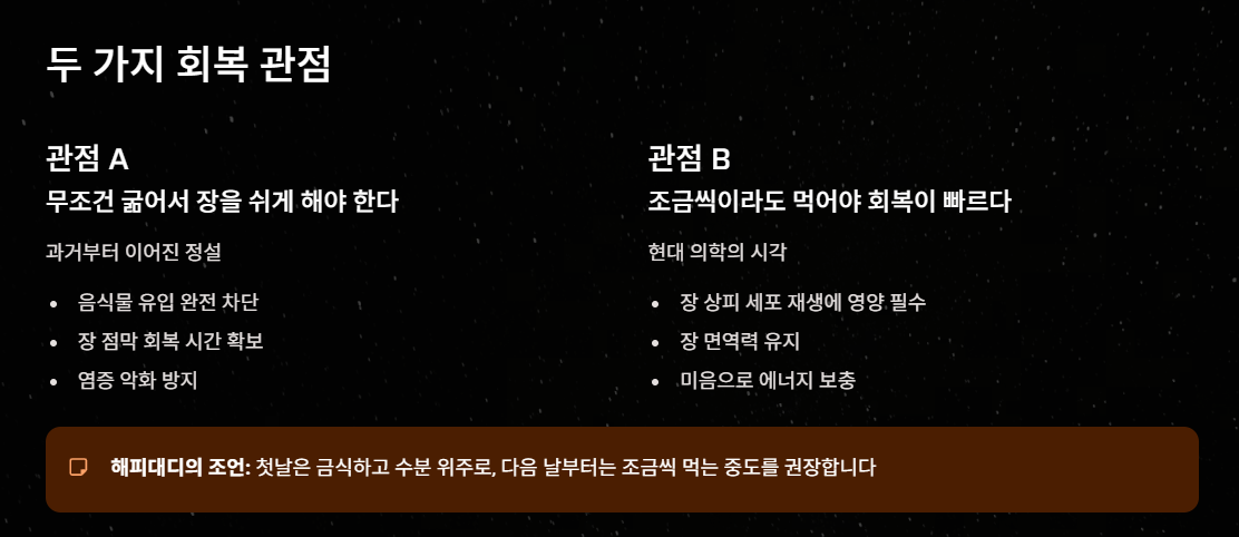 관점 A: "무조건 굶어서 장을 쉬게 해야 한다"