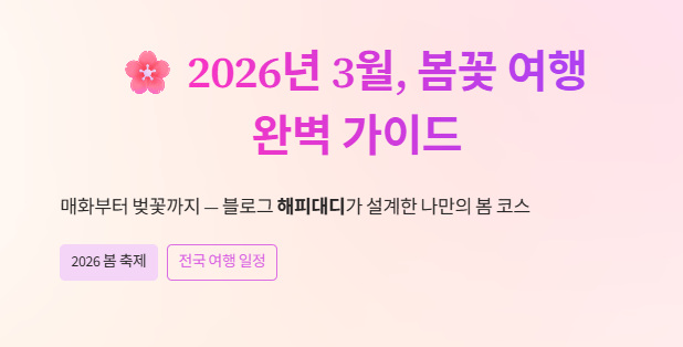 오늘 블로그_해피대디가 여러분의 성향에 딱 맞는 2026년 전국 3월 축제 일정과 맞춤형 코스를 완벽하게 설계해 드릴게요!