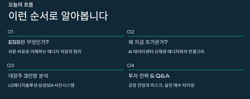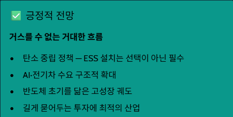 - 필수 인프라의 등극: AI와 신재생 에너지 확대에 따라 ESS는 선택이 아닌 필수 시설이 되었습니다.