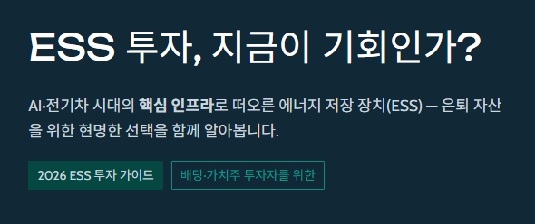 투자자 여러분, 투자는 '조급한 마음'을 버리는 데서 시작됩니다. 2026년의 ESS 시장은 이제 막 꽃을 피우기 시작한 정원과 같습니다. 제가 드린 정보가 여러분의 노후 자산을 아름답게 꽃피우는 영양분이 되길 바랍니다.
