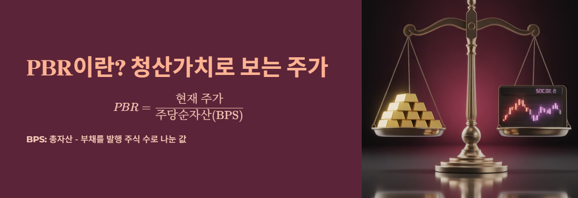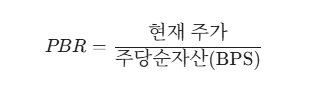 **PBR(Price-to-Book Ratio, 주가순자산비율)**은 주가가 기업의 순자산(자본)에 비해 몇 배로 거래되고 있는지를 나타내는 지표입니다.