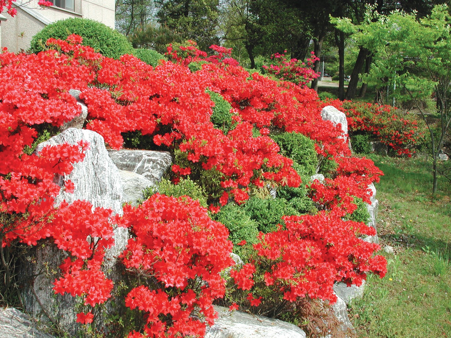 영산홍: 일본에서 들어온 철쭉 품종 중 하나로, 꽃 색이 더 진하고 선명하며, 관상용으로 널리 심어집니다.