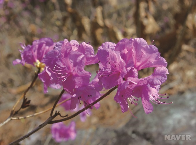 진달래: 한국 전역에서 자생하는 봄꽃. 꽃이 잎보다 먼저 피며, 먹을 수 있는 꽃(화전)으로도 유명합니다.