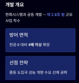 LIG넥스원은 한화시스템과 함께 약 2.8조 원 규모의 천궁-III 개발 사업에 본격 착수했습니다. 기존 천궁-II보다 방어 면적이 4배 이상 넓어진 차세대 방공 체계로, 향후 중동 도입국들의 성능 개량 수요까지 선점할 계획입니다.
