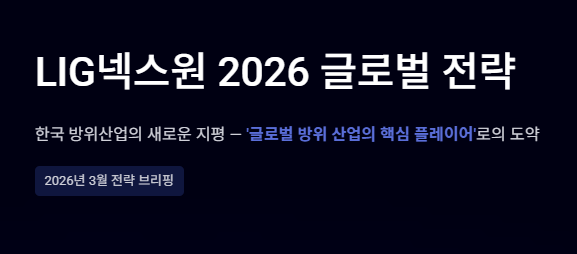 안녕하세요! 대한민국 방위산업의 기술력을 전 세계에 알리고 있는 LIG넥스원의 2026년 글로벌 전략과 분석 내용을 정리해 드립니다.