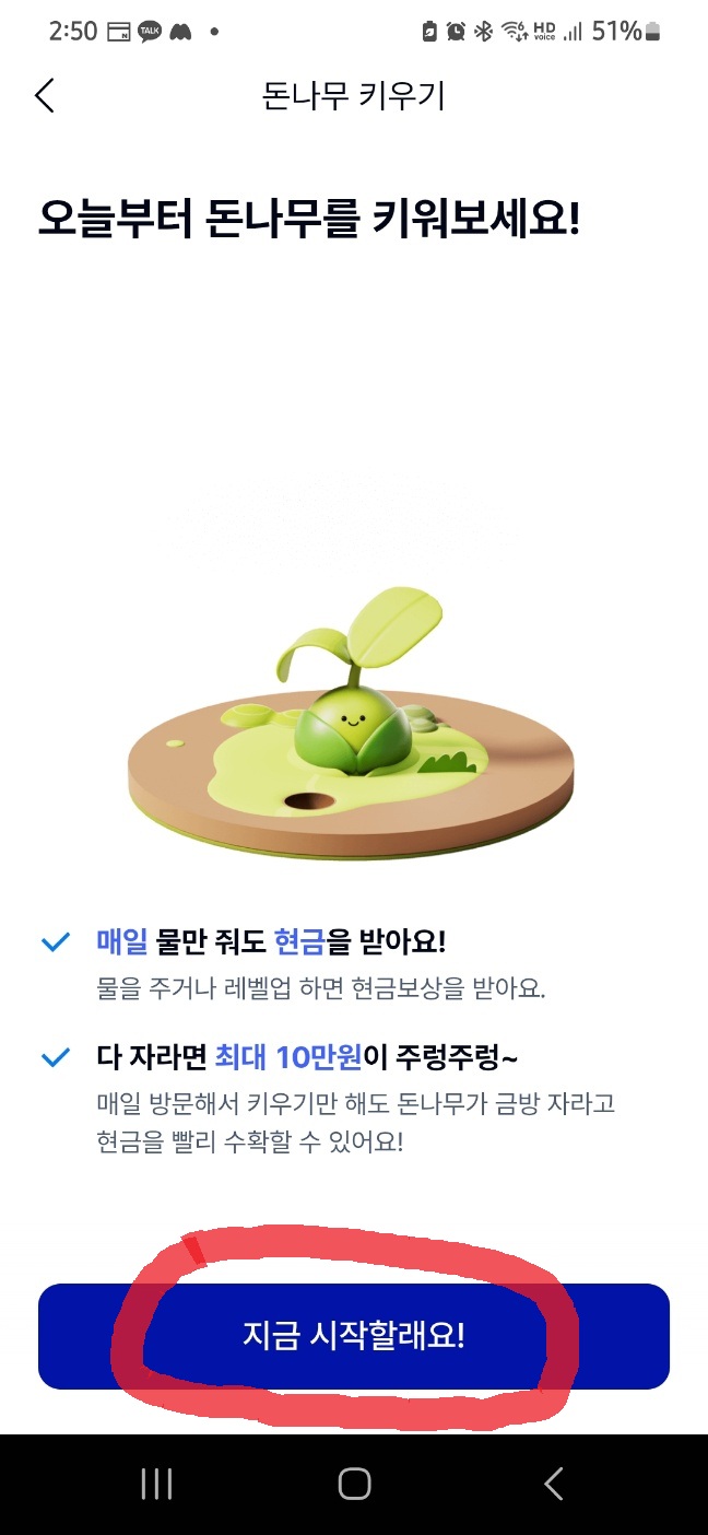 - 메인화면 또는 ‘혜택’ 탭에서 돈나무 키우기 메뉴 클릭