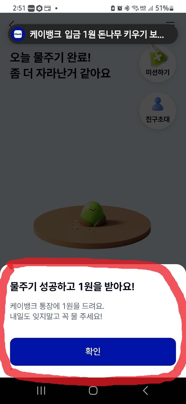 케이뱅크 앱 안에서 가상의 돈나무를 키우면서 출석 체크와 간단한 미션 수행만으로 최대 10만 원까지 현금 보상을 받을 수 있는 꿀 서비스! 매일 1분 투자로 소소한 보상을 챙겨보세요.