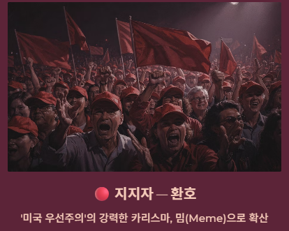 - 지지자들: 트럼프 특유의 '미국 우선주의'와 강력한 카리스마를 보여주는 표현이라며 환호하며 밈(Meme)으로 활용하고 있습니다.