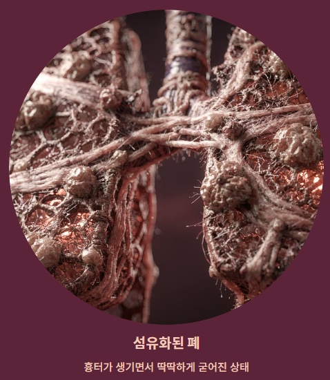 폐가 딱딱해지면 폐의 고유 기능인 가스 교환, 즉 산소를 받아들이고 이산화탄소를 내뱉는 능력이 현저히 떨어지게 됩니다.