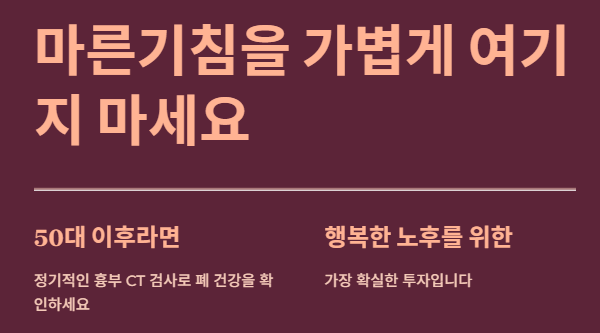 - 결론: 폐 섬유증은 완치보다는 **'관리'**하는 병입니다. 마른기침을 가벼운 감기로 치부하지 마세요. 50대 이후라면 정기적인 흉부 CT 검사를 통해 폐 건강을 확인하는 것이 행복한 노후를 위한 가장 확실한 투자입니다.