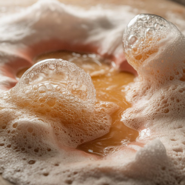 3. 거품이 가라앉으면 따뜻한 물을 채우고 1시간 정도 둡니다.