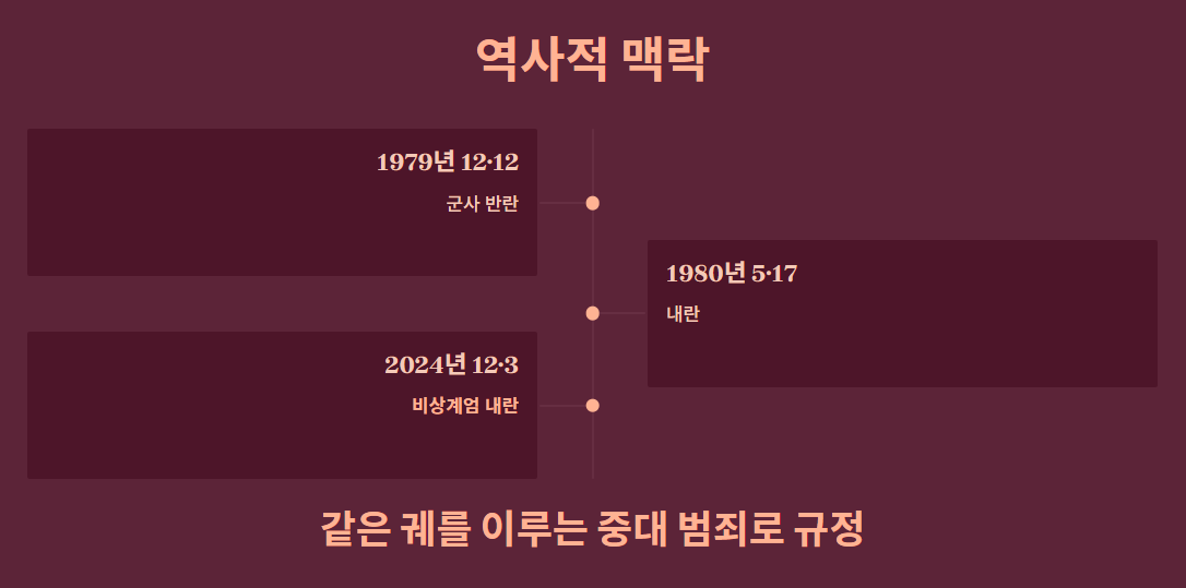 단순한 정책적 판단이나 정치적 행위가 아니라, 군사력을 동원해 국회의 기능을 정지시키고 헌법기관을 무력화하려 했다는 점에서 1979년 12·12 군사 반란 및 1980년 5·17 내란과 궤를 같이하는 중대 범죄로 규정했습니다.