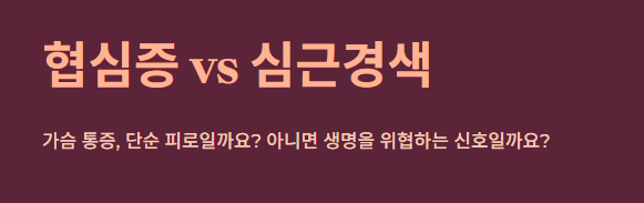 "갑자기 가슴이 옥죄어오는 통증, 단순히 피곤해서일까요? 아니면 내 몸이 보내는 마지막 경고일까요?" 평소 건강하던 사람도 가슴에 통증을 느끼면 덜컥 겁부터 나기 마련입니다. 특히 '심장 질환'은 골든타임이 생명을 결정짓기 때문에, 내가 느끼는 이 통증이 협심증인지 심근경색인지 정확히 아는 것이 무엇보다 중요합니다.