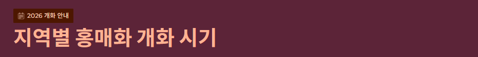 오늘은 2026년 봄, 남들보다 한발 앞서 봄을 만끽할 수 있는 홍매화 개화시기와 전국 명소를 완벽하게 정리해 드립니다.