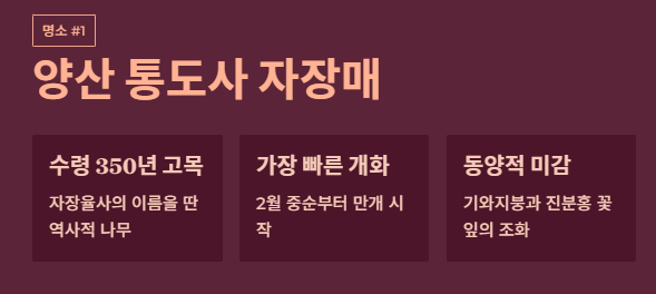 Tip: 매화는 날씨의 영향을 많이 받습니다. 방문 전 해당 지자체나 사찰의 SNS 실시간 현황을 확인하는 것이 필수입니다!