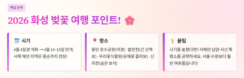 2026년, 복잡한 서울을 벗어나 탁 트인 곳에서 꽃비를 맞고 싶은 분들을 위해 2026년 화성 벚꽃 개화시기와 로컬 명소를 완벽하게 정리해 드립니다.