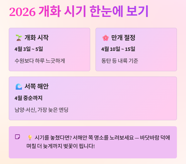 • 개화 예상일: 2026년 4월 3일 ~ 4월 5일