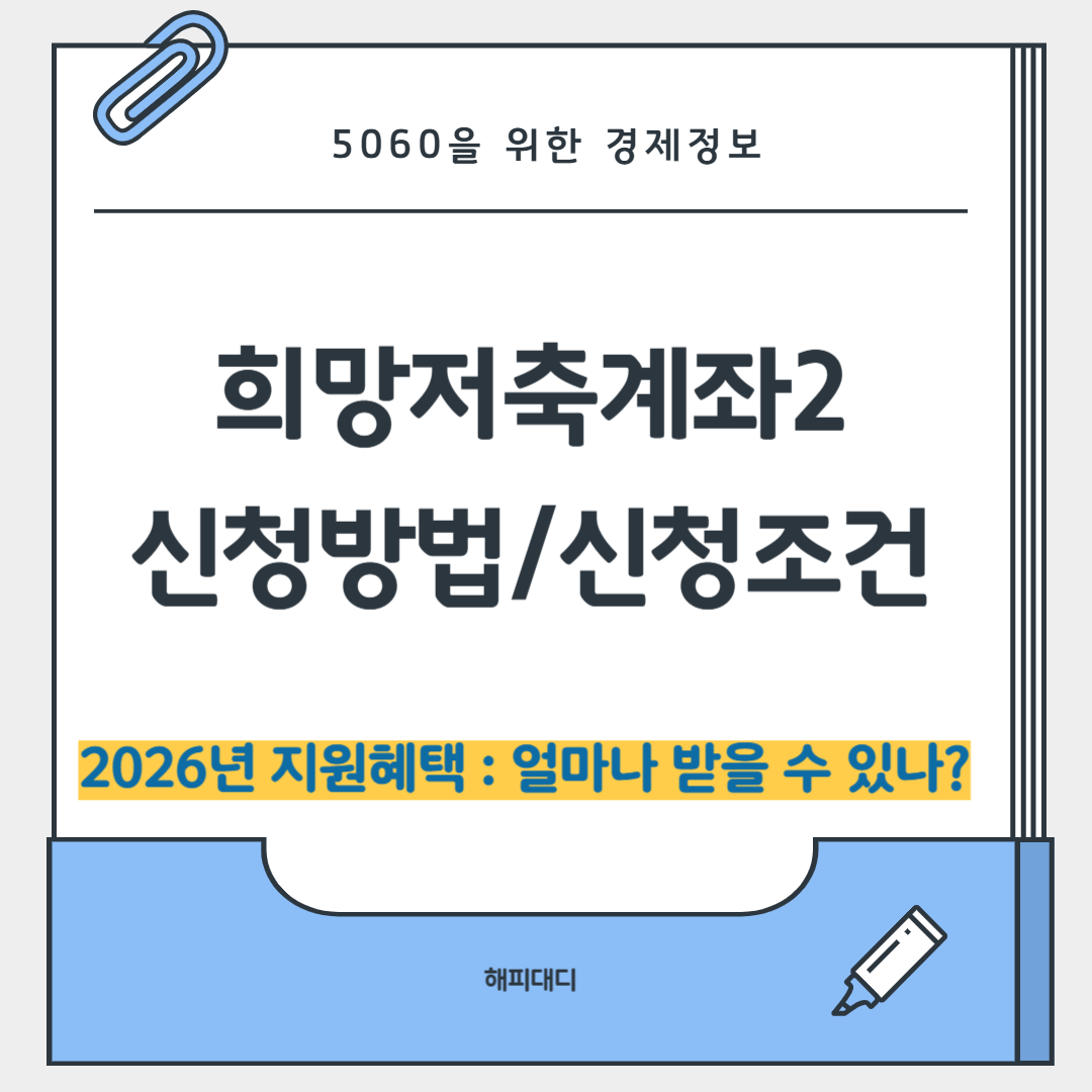 물가는 오르고 월급은 제자리인 요즘, 자산 형성의 든든한 사다리가 되어줄 2026년 희망저축계좌2 신청 방법과 조건을 완벽하게 정리해 드립니다.