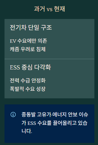 전기차 수요와 별개로, 기업이 ESS 사업에서 얼마나 안정적인 매출을 확보하고 있는지 확인하는 것이 2026년 투자의 핵심입니다.