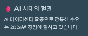 - AI 시대의 혈관: AI 데이터센터 확충으로 인해 광통신 수요는 2026년 정점에 달하고 있습니다.