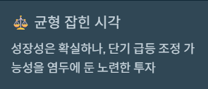 - 균형 잡힌 시각: 성장성은 확실하나, 단기 급등에 따른 조정 가능성을 항상 염두에 두는 '노련한 투자'가 필요합니다.
