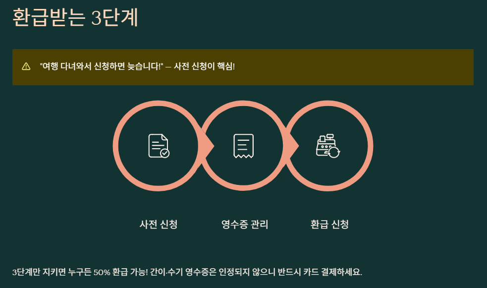 "여행 다녀와서 신청하면 늦습니다." 아래 절차를 반드시 지켜야 환급이 가능합니다.