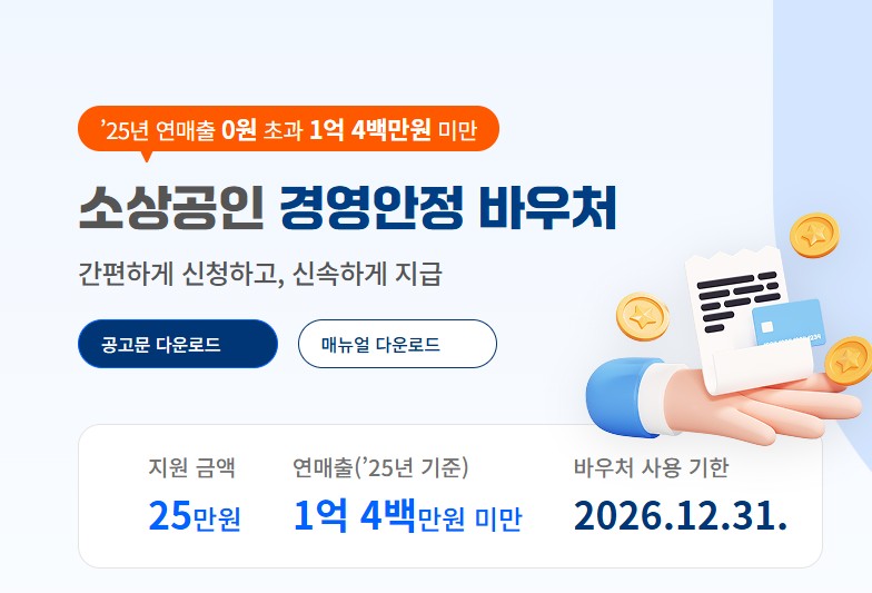 "사장님, 25만 원 챙기세요!" 2026년 소상공인 경영안정 바우처 총정리