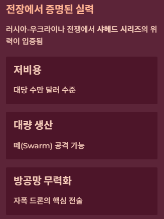 러시아-우크라이나 전쟁을 통해 증명되었듯, 이란의 드론 기술은 세계적 수준입니다. '샤헤드' 시리즈와 같은 자폭 드론은 저렴한 비용으로 적의 방공망을 무력화하는 데 탁월한 성능을 보여줍니다.