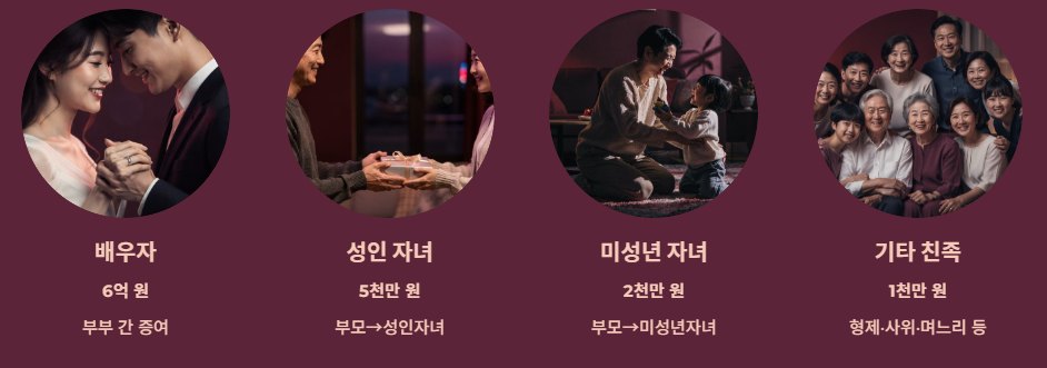 - 성인 자녀 5천만 원, 미성년자 2천만 원까지는 기본 비과세입니다.