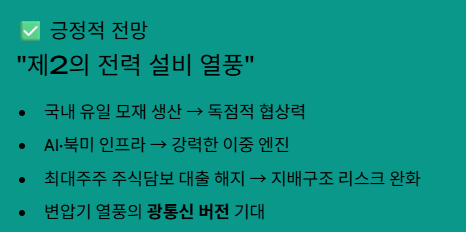- 업황의 호재: AI 데이터센터와 미국의 인프라 투자가 강력한 엔진 역할을 하고 있습니다.