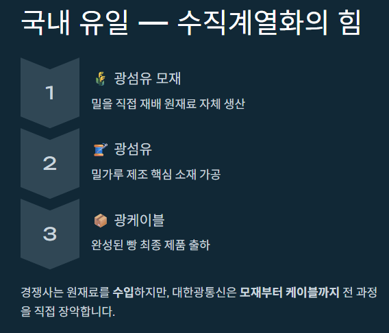 - 국내 유일의 기술력: 광섬유 모재부터 케이블까지 직접 생산하는 독보적 지위를 가졌습니다.