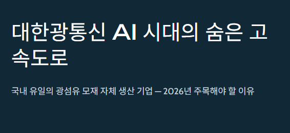 요즘 주식 시장의 뜨거운 감자는 단연 'AI(인공지능)'입니다. 하지만 화려한 인공지능 기술 뒤에서 묵묵히 그 데이터를 나르는 '고속도로'가 있다는 사실, 알고 계셨습니까? 바로 광섬유입니다. 특히 오늘은 국내에서 유일하게 이 광섬유를 직접 뽑아내는 '원조 맛집', 대한광통신에 대해 깊이 있게 들여다보고자 합니다.