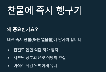 - 십자 내기: 굵은 밑동 부분에 칼집을 열십자(+) 로 넣어주면 두꺼운 부분과 잎 부분이 고르게 익습니다.