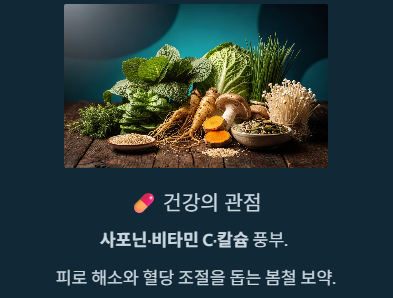 두릅은 사포닌과 비타민 C, 칼슘이 풍부해 '산채의 제왕'이라 불립니다. 피로 해소와 혈당 조절에 도움을 주기에, 맛보다는 건강 보조식품처럼 챙겨 먹는 보약으로 인식되기도 합니다.