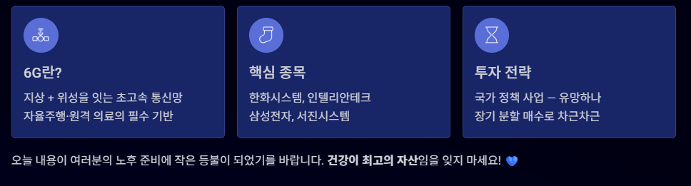 오늘은 은퇴 후 든든한 연금 계좌를 채워줄 수 있는 6G 대장주와 미래 통신 기술의 핵심을 아주 쉽게 풀어서 설명해 드리겠습니다.