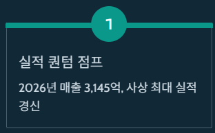 1. 실적 퀀텀 점프: 2026년 매출 3천억 시대를 열며 사상 최대 실적을 경신 중입니다.