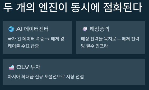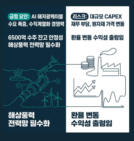 2. 수직계열화 완성: LS전선과의 협업을 통해 '제조-시공-유지보수'로 이어지는 독보적 경쟁력을 갖췄습니다.