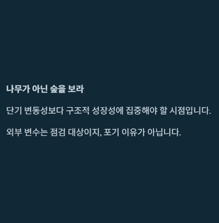 투자자 여러분, "나무를 보지 말고 숲을 보라" 는 말이 있지요. 단기적인 주가 흔들림에 일희일비하기보다는, 이 기업이 가진 독보적인 기술력과 산업의 성장성에 집중해 보시길 권합니다.