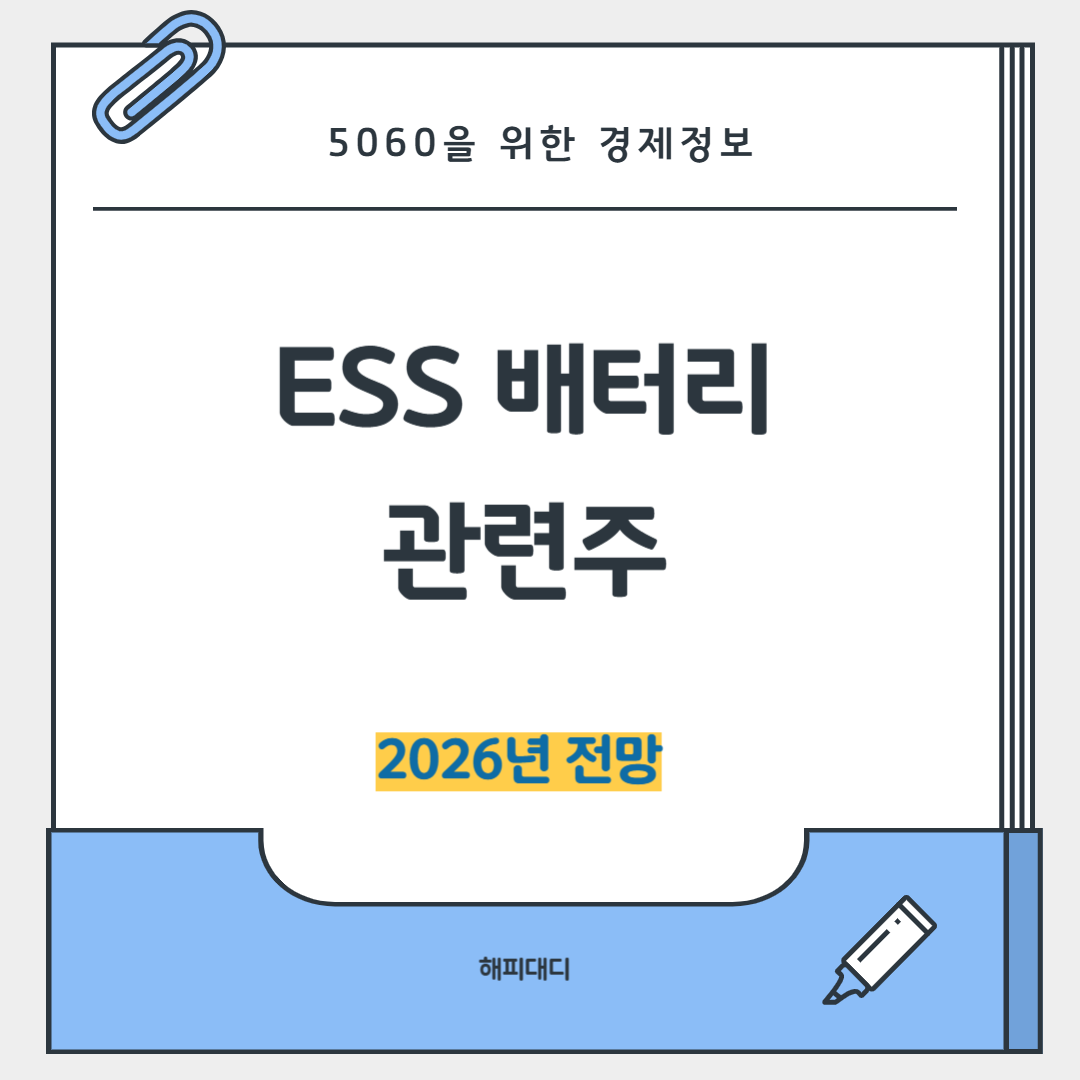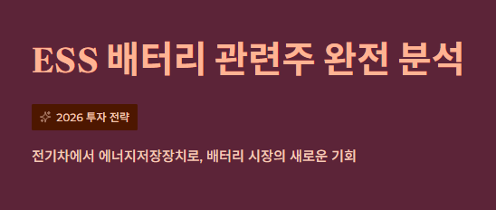 - 결론: ESS는 배터리 업황 반등의 '트리거'입니다. 2026년 포트폴리오에 ESS 관련주 하나쯤은 반드시 담아두시길 권장합니다.