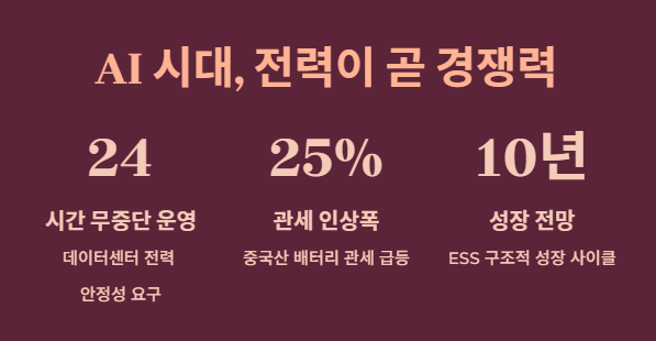 A: 정책적 변화는 있을 수 있지만, AI 데이터센터를 지키기 위한 전력 확보는 '국가 안보'의 문제입니다. 어떤 정권이 들어서도 ESS 인프라 확충은 멈출 수 없는 흐름입니다.