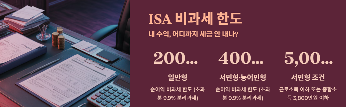 ISA의 가장 큰 매력은 역시 '비과세'입니다. 현재 기준으로 적용되는 한도를 정확히 아는 것이 투자의 시작입니다.